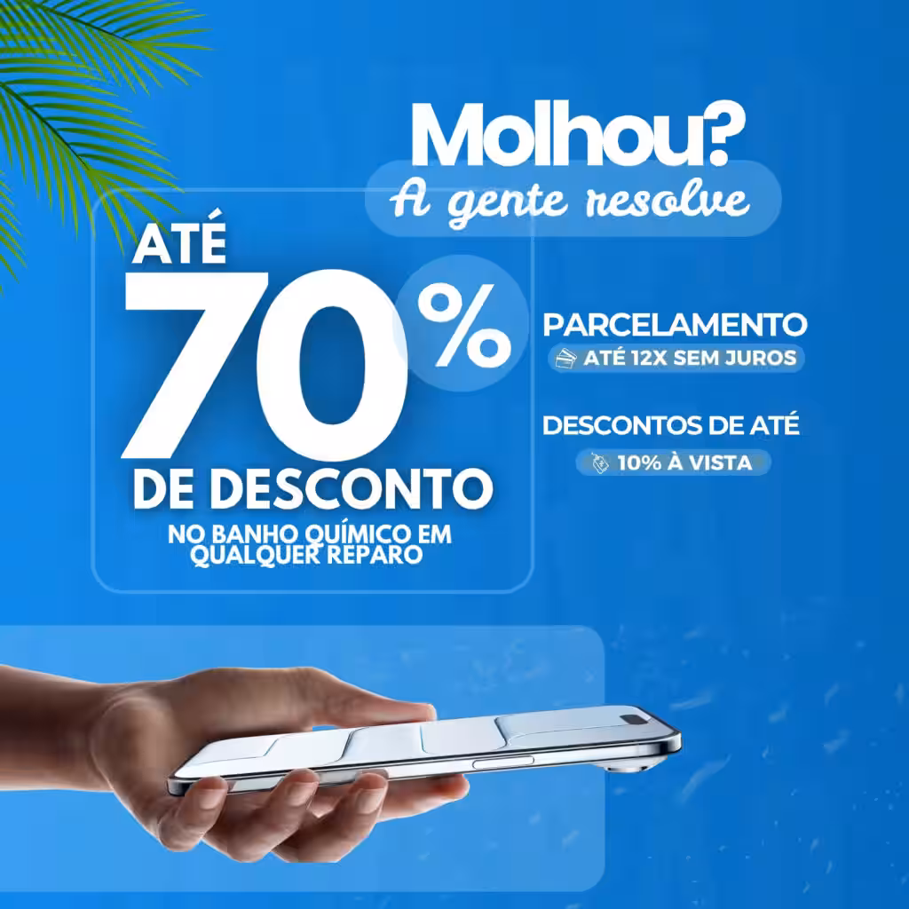 Nesse verão quem ganha é você! Campanha de Verão iService com descontos em reparos selecionados incluindo até 70% OFF no banho químico para aparelhos que molharam além de parcelamento em até 12x sem juros. Aproveite!